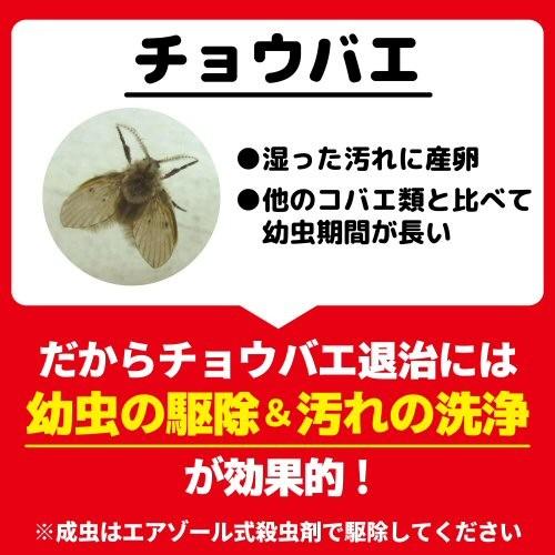 コバエ 駆除 薬剤-天然除虫菊 キッチン虫スプレー 4ml キッチン リビングなどの虫退治 シバンムシ・クモ コバエ チャタテムシ駆除 5つ星のうち38 9 ¥2,145 ¥2,145 (¥5/ml) 43ポイント (2%) 2%以上 ポイント 9分で全滅させるも、10分後にフラフラながら1匹が復活しました。 9分で全滅させるも、10分後にフラフラながら1匹が復活しました。チョウバエ駆除サービス チョウバエの潜む排水溝や汚水槽などを調査。 効果的な方法で駆除します。 チョウバエの幼虫は食べ物カスなどゴミのたまりやすい場所や冷蔵庫の下などの掃除がしにくい場所に生息しています。 泡のパワーで薬剤を隅々まで